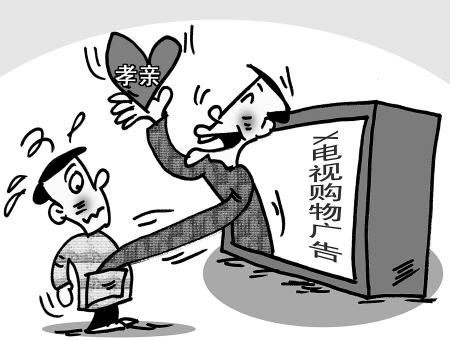 電視購物廣告滿天飛,“包治百病、讓老人健康長壽、子女孝敬老人必選產品……”眾多廣告詞令人眼花繚亂。網友“猴大桃”就遭遇了這樣的購物陷阱 ——買吧,這些廣告明顯言過其實;不買吧,老人又說自己不孝順?鄲啦灰训木W友在網上發帖,希望能組織一個“孝子聯盟”,抵制虛假廣告對老人的侵害。