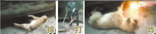抓住小狗,把它從約2米高的階梯上用力摔下,一聲慘叫后,小狗動彈不得;隨后,一名穿綠衣的男孩和一個穿橫條紋T恤的男孩將鞭炮塞進已經(jīng)奄奄一息的小狗的嘴里和耳朵里炸;兩人還手持木棍對著小狗一頓亂打……這不是恐怖電影,而是發(fā)生在宜賓街頭的一起虐待流浪狗事件。