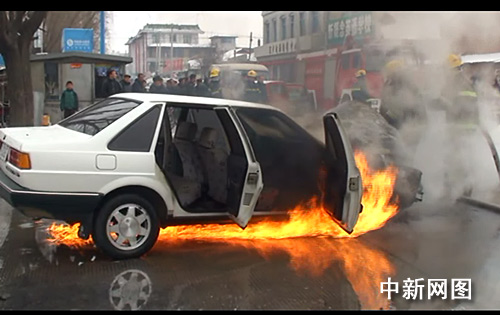 中新網七臺河3月20日電 今天7時20分,在黑龍江省七臺河市勃利縣長安街上一輛白色桑塔納轎車發生自燃,火勢猛烈燃燒并冒出滾滾濃煙,勃利縣消防大隊消防官兵趕赴現場將火撲滅。