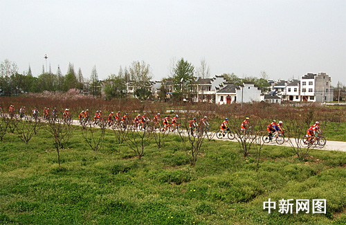 中午12時許,隊伍抵達慈惠石榴紅村。一排排白墻黑瓦的徽派民居掩映在桃花和油菜花之間,讓人仿佛到了江南小鎮。車友們在這里賞景拍照,采摘鮮蔬,品嘗農家菜,結束了愉快的騎游之旅。