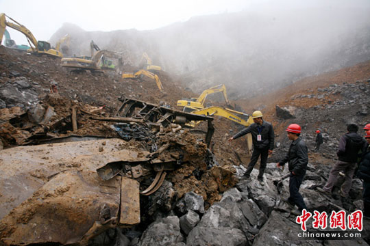 據(jù)介紹,搜救犬幫助確定位置后,繼10日17:30分發(fā)現(xiàn)一臺后,今天又在垮滑現(xiàn)場陸續(xù)發(fā)現(xiàn)3臺汽車,至此垮滑現(xiàn)場已找到5臺汽車殘骸。記者在現(xiàn)場看到,汽車大梁、駕駛室、發(fā)動機(jī)全部支離破碎成了一堆廢鐵。10臺挖掘機(jī)正在不停的工作。現(xiàn)場兩位公安人員拿著照相機(jī)、攝像機(jī)正在汽車殘骸前取證。三位救援工作人員一邊指揮,一邊提醒挖掘機(jī)司機(jī)小心謹(jǐn)慎。樂山消防支隊(duì)的官兵也在查看現(xiàn)場情況,看能否發(fā)現(xiàn)被埋人員。武警樂山支隊(duì)的30余名官兵也做好一切準(zhǔn)備,一但發(fā)現(xiàn)情況將迅速趕赴清理現(xiàn)場增援。