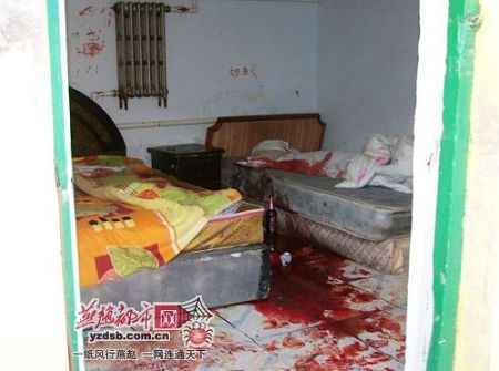 據旅店老板介紹,12日下午三點多,她看到小明小亮居住的房間門前有幾個血腳印,心里想這是怎么了,就上前敲門,里面的人不開門,她繼續敲門,門終于開了,她也被眼前的場景驚呆了:“屋子里的血流了一地,其間還夾雜著醉酒的嘔吐物,大片的血跡中間是兩個啤酒瓶子。兩個男孩一個蹲坐在地上,一個坐在床上,一邊墻上用血寫著‘XX,我愛你’,一邊寫著‘我錯了,我愛你……’ ”