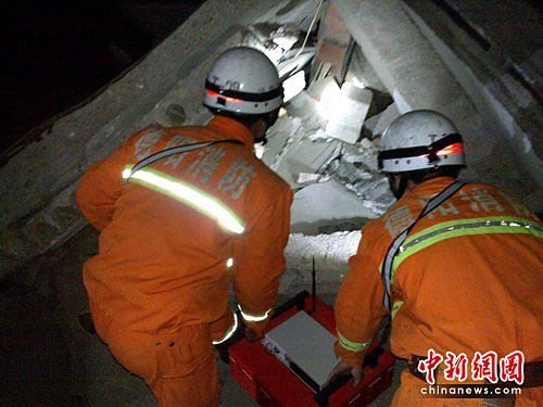 “有人、有人,快挖!”他們立即放下探測裝備展開營救,周圍的消防官兵也聞迅投入到營救中,他們先用鐵鏟將被埋人員上方的磚塊、混凝土等鏟除,利用液壓擴張器、金屬切割器等專業(yè)救援裝備,將斷裂的樓板等進行分開、支撐、掀起,努力開辟營救通道。為避免鐵器傷及被埋人員,救援人員徒手將石塊、鋼筋和建筑殘渣進行清理,一層一層向下挖,很快一支手臂出現(xiàn)在官兵們眼前,他們加快速度,不到5分鐘,這名婦女被救出了廢墟,遺憾的是,這名婦女由于傷勢過重早已勛命。肖國平楞住了,他滿懷心切,以為能救出生命,他的心沉甸甸的。按照當?shù)亓曀祝勒邞?yīng)該由僧人來挖,且要現(xiàn)場念經(jīng)超度。他們收拾起沉重的心情立即投入到搜索被困人員中。