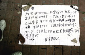 “相親男”還說,采取這種方式來溫州市區征婚,這次是第三次了,第一次是今年正月初四來的,第二次是在三四天前來的,都是在公園路一帶擺攤。他說他的家人對此行為并不知情。