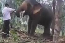 【解說】張春風說,在傳統的木頭雕刻中,大多數人選材都會選擇正規、圓潤的木材來雕刻,但他認為,樹枝奇特的外形可以激發自己更多的創意靈感,他將樹枝的外形作為創作來源,在不破壞樹枝的外形下進行雕刻創作。