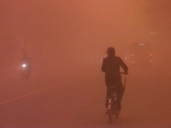 2011年4月29日,河西五市及白銀、蘭州等市出現沙塵天氣,蘭州市民上街掩面而行。蘭州中心氣象臺于07時15分發布沙塵暴橙色預警信號,預計12小時內,上述地區沙塵暴仍將持續,局部地方有強沙塵暴。 (記者 韓璐 通訊員 楊棟春 蘭州酒泉報道)