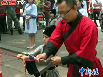 【解說】慶元縣始建于1197年,距今有800多年的歷史,境內文化古跡眾多,是中國民間文藝家協會認定的“中國廊橋之鄉”,縣內保存的木工廊橋最早始于北宋。其中,坐落在慶元縣舉水鄉月山村的如龍橋修建于明天啟五年,因其結構復雜,工藝精湛,被列為中國木拱廊橋中惟一的國家級文物保護單位。在參觀古跡的同時,浙港大學生們還和當地知名的文化古村月山村進行調研與村民聯歡互動活動。先人精湛的杰作,民間淳樸的鄉風、深深地感染著兩地的學子們。