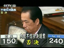 內閣不信任案遭否決 菅直人繼續擔任日首相