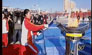 上午10時,護衛隊員先用從吉林市北山采集的火種點燃主火盆,隨后吉林省副省長陳偉根點燃火炬“瑞雪”,并將它交到長春市市長崔杰手中。