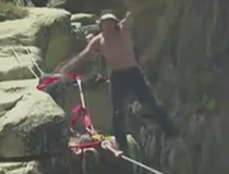 男子懸崖間玩心跳 赤腳走鋼絲