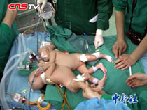 湖南罕見心肝相連聯(lián)體女嬰“分身”成功