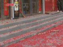商戶喜迎開(kāi)門 鞭炮碎屑忙壞環(huán)衛(wèi)工