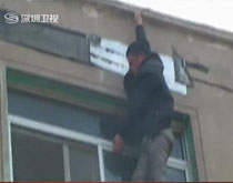 實拍:煙臺男子酒后跳樓 消防員徒手接人