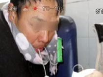 擔心孫子吊水冷 爺爺口含輸液管