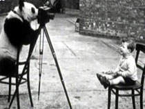 小狗平衡感超強(qiáng),后腿站立在鐵鏈上隨意擺動(dòng)。