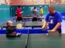 英國年僅1歲半寶寶坐球臺上練乒乓走紅
