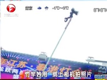 村民就地取材把磚頭綁在電線桿上自制"梯子"