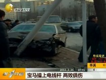 寶馬撞上電線桿 兩敗俱傷