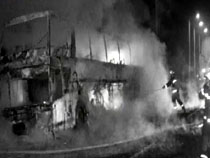 雙層大巴燒成空殼 車上67名乘客毫發未損