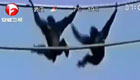 兩只猴子走纜繩動作同步