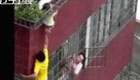 實拍:幼童頭卡窗戶欄桿懸在半空