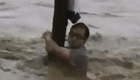 實拍:洪水瞬間淹路 男子抱樹待救