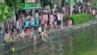 男子發現鴨子被凍湖面 跳湖破冰救援