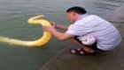 男子帶寵物黃金蟒游泳引圍觀
