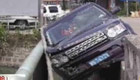 橋頭竄出兩條小狗 路虎被卡護欄