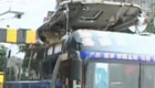 廣州:雙層巴士慘遭龍門架“削頭”
