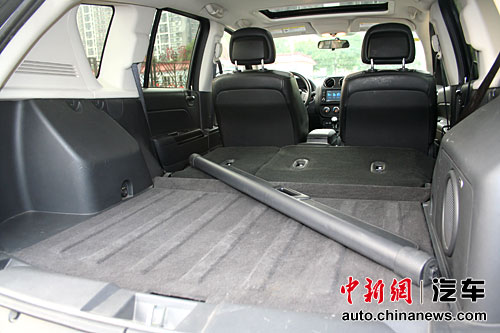 前排座椅乘坐的舒適性相當不錯。局限于車身尺寸,后排空間略顯稍小,想悠閑的翹起二郎腿是不可能了,但一般的乘坐是夠了。后排座椅可以等比例放倒,放平后,車廂后部擁有了1277L的超大行李箱空間,對于盛放普通行李而言已經綽綽有余。不過遺憾的是,在小儲物空間處理方面,Jeep指南者缺乏了一些人性化的設計。