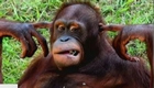 紅毛猩猩嫌吵鬧用手指堵住耳朵