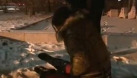 拍客:醉酒女子夜臥雪地