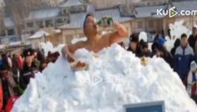 拍客:赤身埋在雪堆中吃冷面喝啤酒
