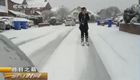 下雪天上班族滑雪上班 小編滿眼羨慕