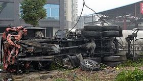 湖南一液化槽罐車翻倒橋下 數千人疏散