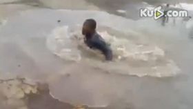 男子發現鴨子被凍湖面 跳湖破冰救援