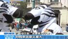 實拍:玻利維亞年輕人扮"斑馬"參與交通指揮