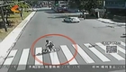 監拍:小伙騎車闖紅燈 快到對面時被撞飛