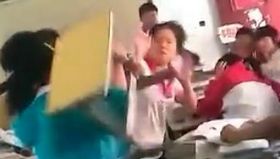 女生課堂打架掄板凳互劈 全班冷漠圍觀