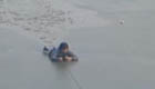 男子破冰釣魚落冰窟 消防拋繩拖拽上岸