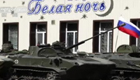 懸俄旗幟裝甲車入城