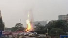 實拍:煤氣管被挖斷起火 火焰高達十米