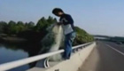 奇葩男子高速上撒網捕魚 見交警扔網就跑