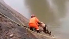 男子發現鴨子被凍湖面 跳湖破冰救援