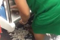 大媽地鐵上剝蒜
