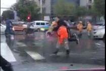 環衛工蹚水背學生過馬路 “我也有孩子”