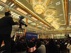 - 李肇星:2010-3-4 11:08十一屆全國人大三次會議的開幕會、閉幕會和其他各次全體會議接受中外記者采訪,還有一大批代表團的團組會議將向中外記者開放。大會期間將舉行若干場記者會,邀請全國人大有關專門委員會、國務院有關部門的主要負責人分別就加強和改善宏觀調控、我國的外交政策和對外關系、保障和改善民生、節能減排和應對氣候變化等問題回答記者們的提問。3月14日會議閉幕會后,國務院總理溫家寶將與采訪會議的中外記者見面并回答問題。采訪大會的記者越來越多,為了方便大家采訪,今年的記者會都安排在大會堂三樓金色大廳舉行。