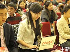 - 中新網(wǎng)報道:2010-3-14 09:57中新網(wǎng)記者吳歆在第一排占據(jù)了一個黃金位置,這幾天她和中新社兩會報道組的數(shù)十名同事一起,奔波于各個會場、駐地。今天終于迎來了兩會報道的最后一戰(zhàn)。