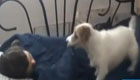 【同期】(臺灣藝人 陳志朋)有一點點父愛的味道吧!剛才舔我身上,覺得很好玩,很幸福,很像抱了一個嬰兒一樣。因為其實它們很可愛,就是跟小孩子一樣,就是用抓的。